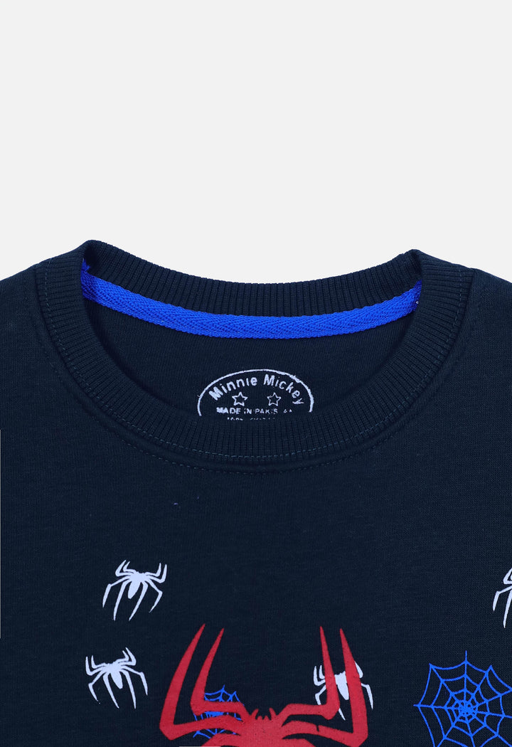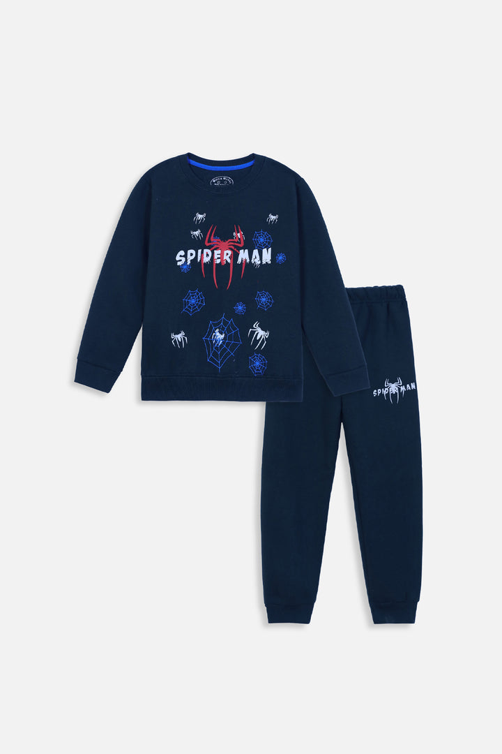 Boys Navy Spider man Printed Fleece Track suit ( 1 Year to 10 Years)