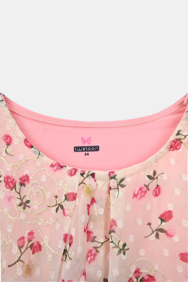 GIRLS FANCY PRINTED BLOUSE WITH T-SHIRT