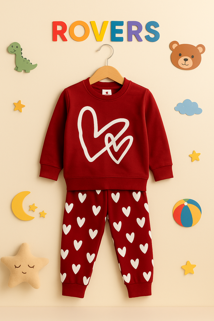 Premium Quality "Double Heart" Printed Fleece Sweat Suit