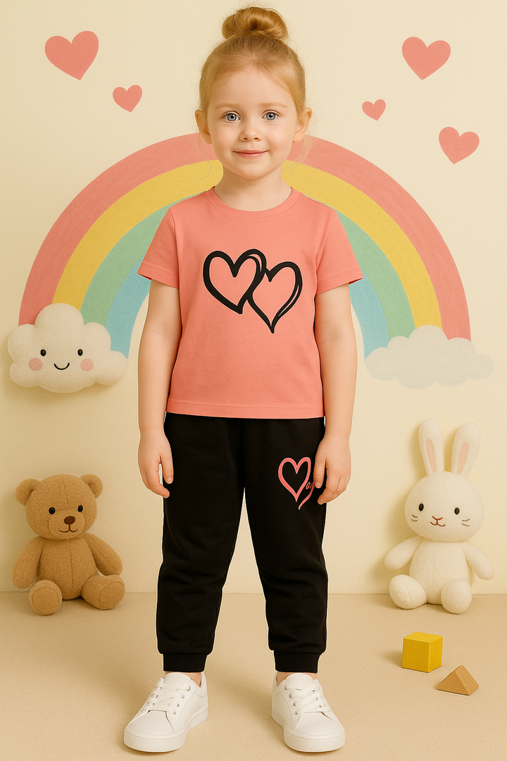 Summer just got a lot more playful with our Girls printed Tracksuit Trouser & Shirt combo! Perfect for a day of fun in the sun, this outfit combines style and comfort with its vibrant print and lightweight material. Don't let your little one miss out on this trendy addition to their wardrobe!