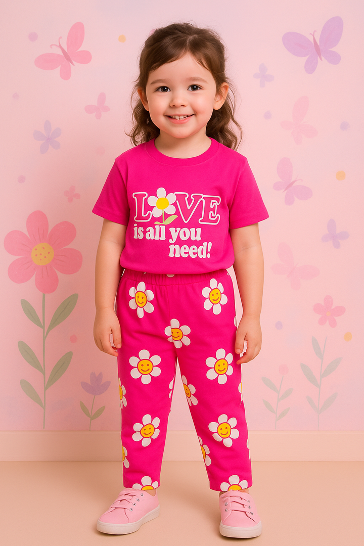 Girls Printed Summer Tracksuit Trouser & Shirt